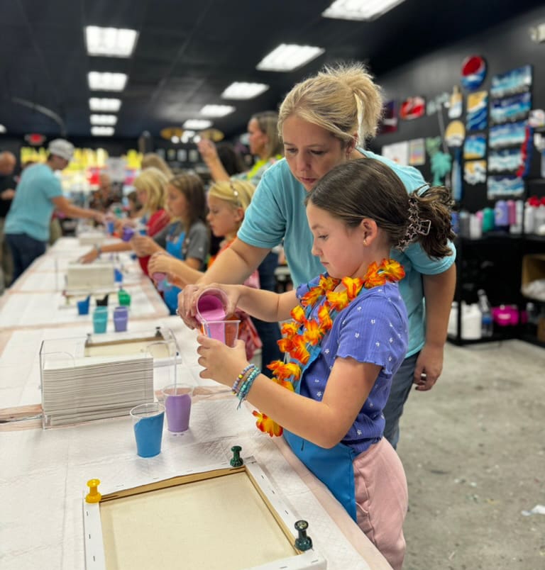 Scrolling through is one thing, but getting your hands messy is way better. We love seeing what our community comes up with, and we’re always looking for new masterpieces to add to these walls. If you see a style you love or a color combo that would look perfect in your living room, let’s talk. Drop us a line and let’s get your group on the schedule!